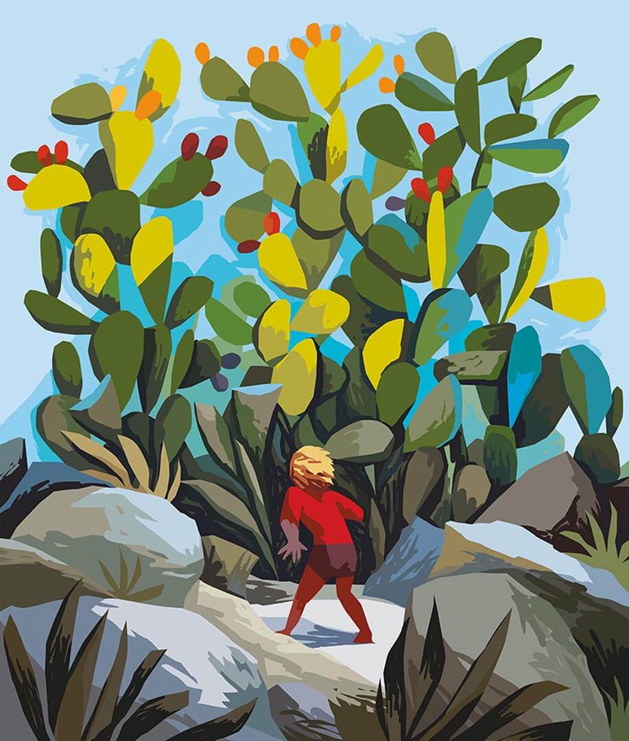 First, I start imagining a scene, then I draw it. I make an endless series of corrections to the digital files, then I print the sheets for my collage, and I work on them, again and again, with brushes and acrylic paint.